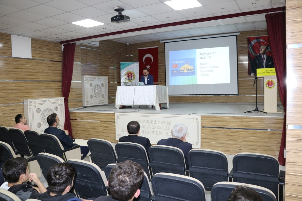 05.05.2025 Pazartesi günü Okulumuz Tevfik İleri Konferans Salonunda "HİKMET" projesi kapsamında Amasya Üniversitesi Sosyal Bilimler Enstitüsünden Öğretim üyesi Dr. Yusuf Bahadır KESKİN "Teoriden Pratiğe Uluslarası İlişkiler" konulu konferans vermiştir. Hocamıza katkılarından dolayı teşekkür ediyor, çalışmalarında başarılar diliyoruz.